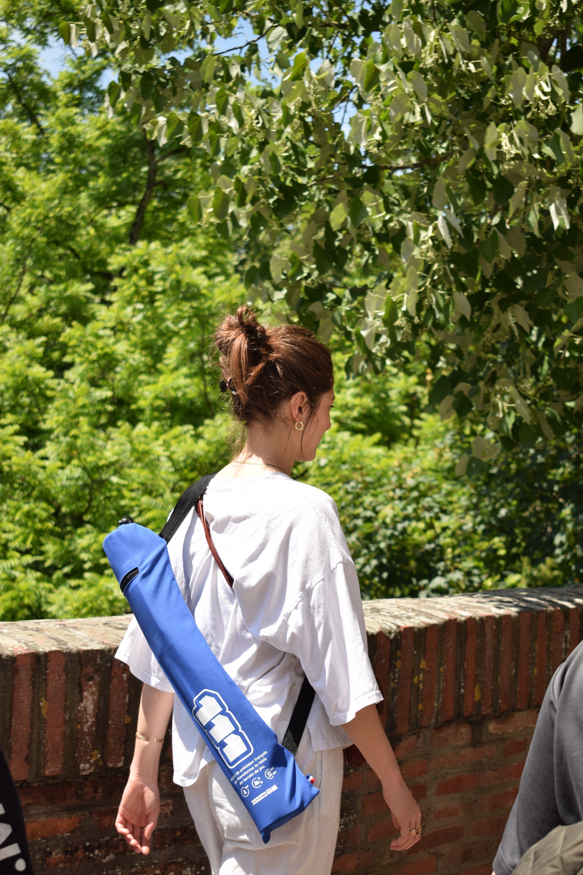 Enroulé, le jeu est dans sa sacoche et se transporte sur une épaule.